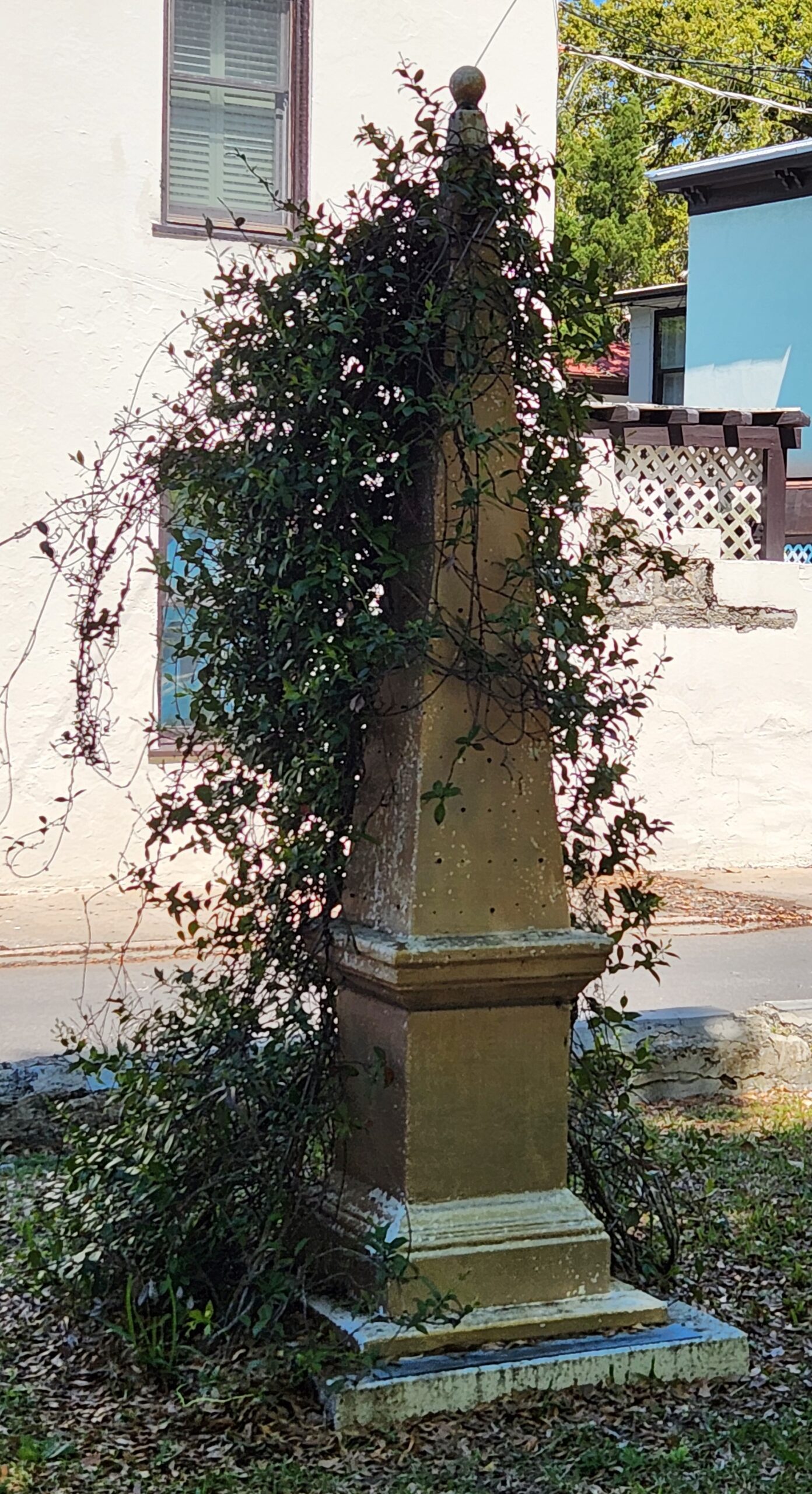 The Obelisk that stands in St Francis Park was part of The Obelisk Art 450 Project initiated by Compassionate St. Augustine as part of the celebration of the 450th anniversary of the nation’s oldest city in 2015. The obelisks are replicas of the 30-foot Monumento de la Constitución which stands in La Plaza de la Constitucion and were on display at various locations in St. Augustine’s historic district from October 2, 2015, to January 31, 2016.